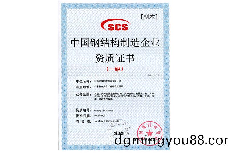 中(zhong)國鋼(gang)結構(gou)製造(zao)企(qi)業資(zi)質證(zheng)書(一(yi)級(ji))