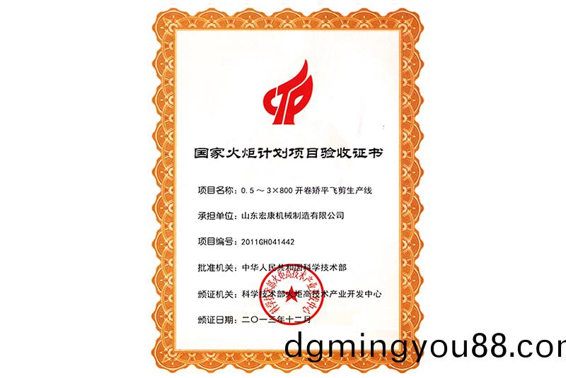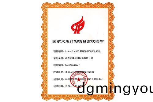 國傢火矩(ju)計劃(hua)項(xiang)目驗(yan)收(shou)書(shu)