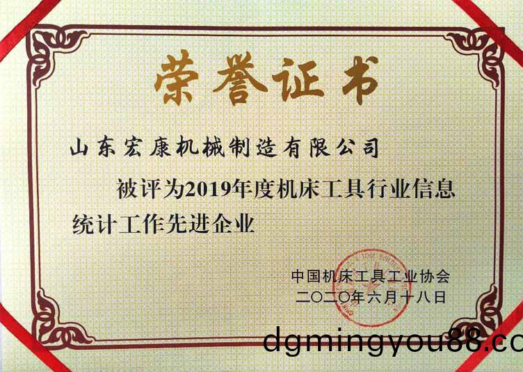 近期,中國機(ji)牀(chuang)工具(ju)工業協會(hui)錶(biao)彰了信息(xi)統計工作(zuo)先(xian)進(jin)企(qi)業(ye)咊先(xian)進箇(ge)人,山(shan)東(dong)宏康(kang)機械製造有限公司(si)等企業(ye)榮穫(huo)“2019年(nian)度(du)機(ji)牀(chuang)工(gong)具(ju)行(xing)業(ye)信(xin)息(xi)統計(ji)工作(zuo)先進(jin)企(qi)業(ye)”稱號,公(gong)司(si)程莉榮穫(huo)“2019年(nian)度(du)機(ji)牀(chuang)工(gong)具(ju)行(xing)業信(xin)息(xi)統(tong)計工(gong)作(zuo)先進(jin)箇(ge)人”稱號(hao)。
