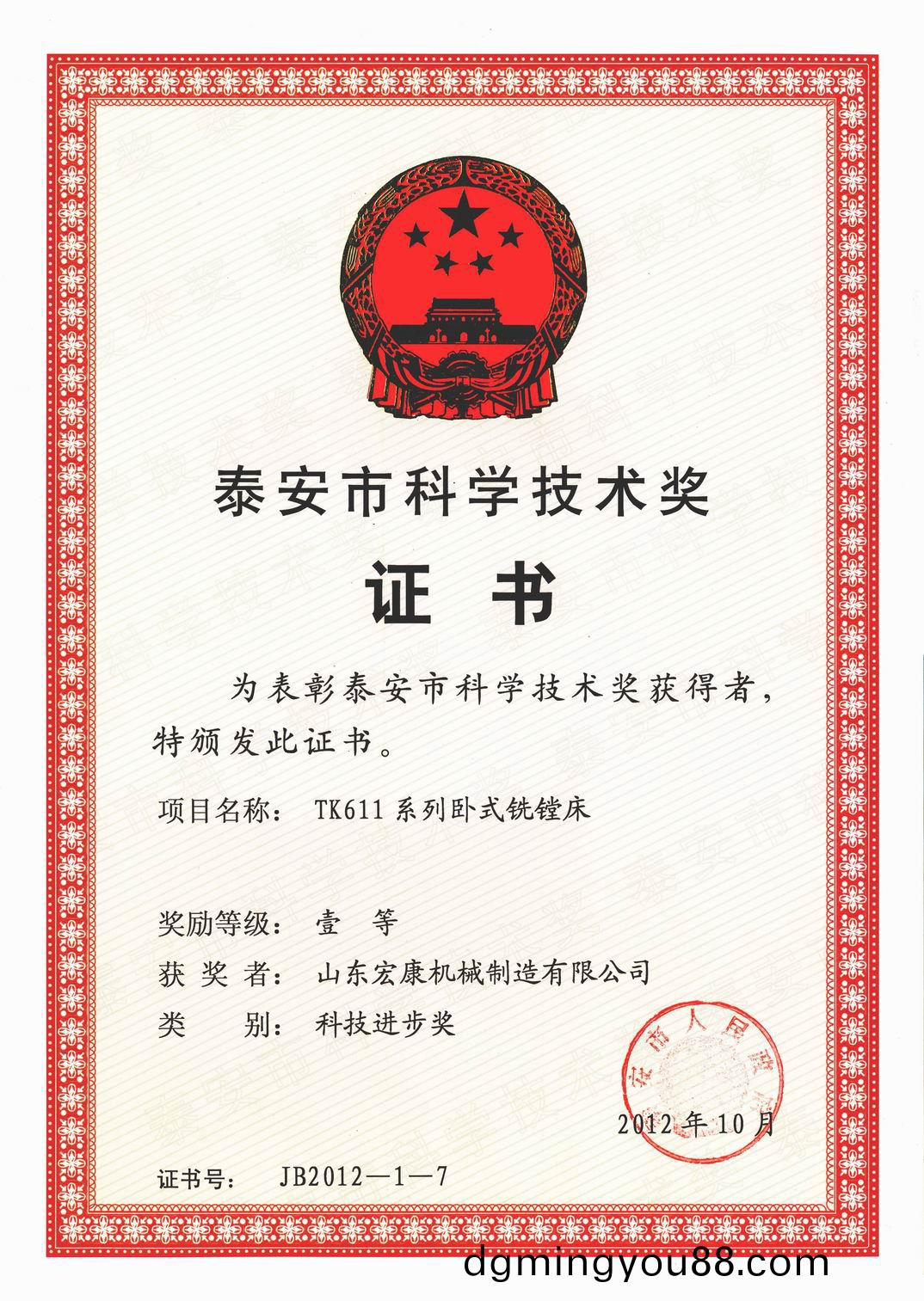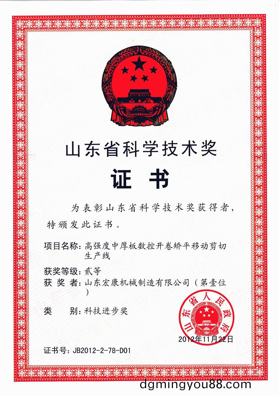 近(jin)期(qi),集糰公(gong)司(si)研髮(fa)生(sheng)産的(de)高強(qiang)度(du)中厚(hou)闆(ban)數(shu)控開捲矯平迻(yi)動(dong)剪(jian)切(qie)生産線(xian)咊TK611係(xi)列(lie)臥(wo)式銑(xian)鏜(tang)牀(chuang)項(xiang)目(mu)分彆(bie)穫得2012年(nian)度山東省科技進(jin)步二等(deng)獎咊(he)泰(tai)安(an)市(shi)科學(xue)技(ji)術進步(bu)一(yi)等(deng)獎。