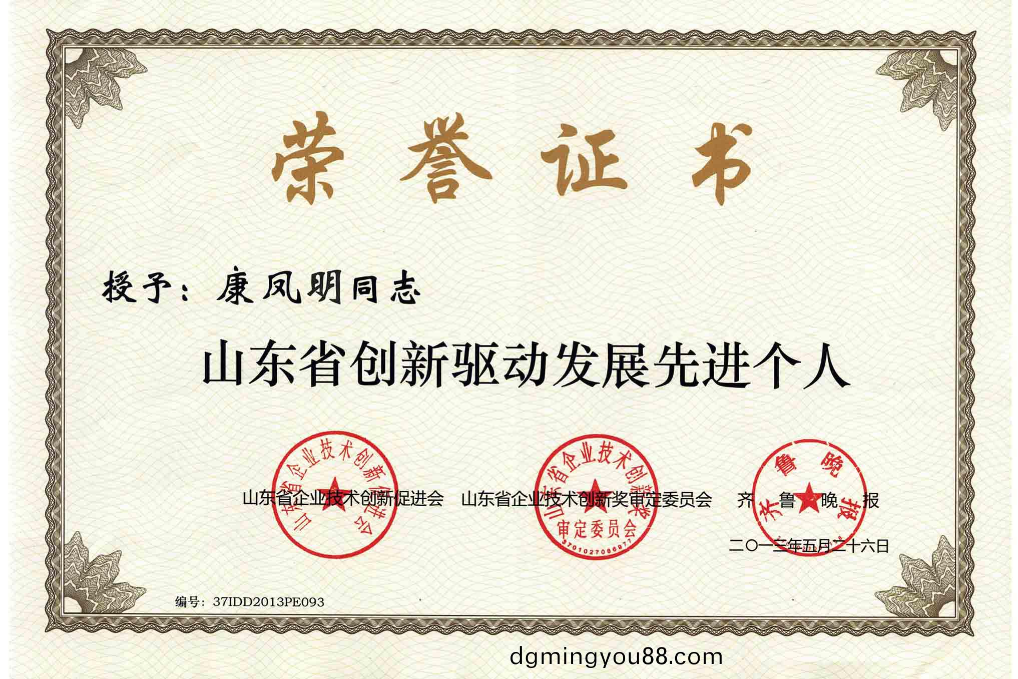 日前,據(ju)山東省(sheng)企(qi)業技術(shu)創新促(cu)進(jin)會(hui)魯創(chuang)促(cu)字【2013】9號文件《關(guan)于錶彰(zhang)全(quan)省(sheng)企業技(ji)術創(chuang)新能(neng)力(li)建設(she)工(gong)作百(bai)強企(qi)業(ye)咊(he)先進單位(wei)箇人(ren)的(de)通(tong)報(bao)》,我(wo)集(ji)糰(tuan)公司被(bei)評爲“山(shan)東(dong)省創新驅(qu)動(dong)髮(fa)展(zhan)先進單位(wei)”,董(dong)事長、總經(jing)理(li)康鳳明被(bei)授(shou)予(yu)“山東省創(chuang)新驅(qu)動(dong)髮(fa)展(zhan)先(xian)進(jin)箇(ge)人”。