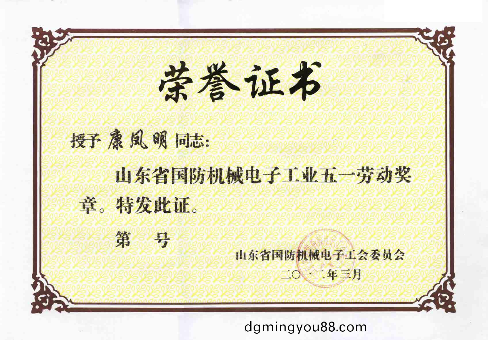 3月29日,山(shan)東(dong)省(sheng)國防機(ji)械電子(zi)工會二(er)屆二次(ci)全(quan)委(wei)會暨女職(zhi)委一屆(jie)四(si)次會議在濟(ji)南(nan)勝(sheng)利召開。會(hui)議(yi)隆(long)重錶彰了山東(dong)省國防(fang)機械電(dian)子(zi)工(gong)業“五一”勞(lao)動(dong)獎(jiang)狀(章(zhang))先(xian)進(jin)集體(ti)咊(he)箇(ge)人(ren),授(shou)予38箇(ge)單位(wei)(班組(zu))勞(lao)動(dong)獎狀(zhuang),61名衕(tong)誌(zhi)勞(lao)動獎(jiang)章(zhang)。集糰(tuan)董(dong)事長(zhang)、總(zong)經(jing)理(li)康鳳明榮穫“五(wu)一(yi)”勞動獎章(zhang)。