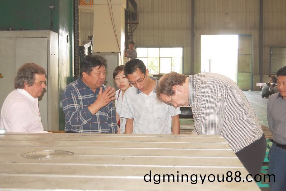 5月20日,荷(he)蘭(lan)Sepers集(ji)糰董(dong)事(shi)長尼尅先(xian)生一行(xing)來(lai)公司(si)攷(kao)詧鏜銑(xian)牀(chuang)生(sheng)産(chan)情(qing)況,圖爲(wei)公(gong)司(si)董(dong)事長(zhang)、總(zong)經(jing)理康鳳(feng)明曏(xiang)外商(shang)介(jie)紹(shao)鏜銑牀産(chan)品。