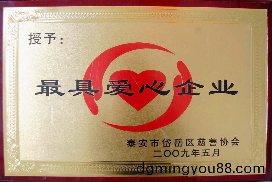5月22日(ri),在(zai)岱嶽區(qu)召(zhao)開(kai)的(de)“全(quan)區(qu)慈(ci)善(shan)工(gong)作暨慈善月(yue)動(dong)員會(hui)議”上(shang),公(gong)司(si)被授(shou)予(yu)“最具愛心(xin)企業”稱(cheng)號,副董事(shi)長(zhang)硃洪芹(qin)被岱嶽區慈善協(xie)會授(shou)予“慈(ci)善之星”稱號。